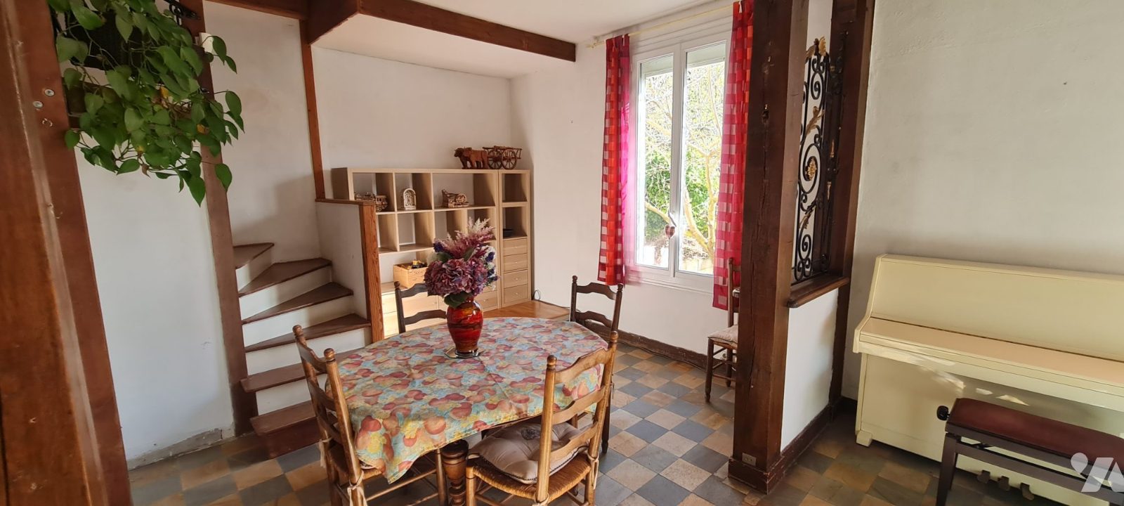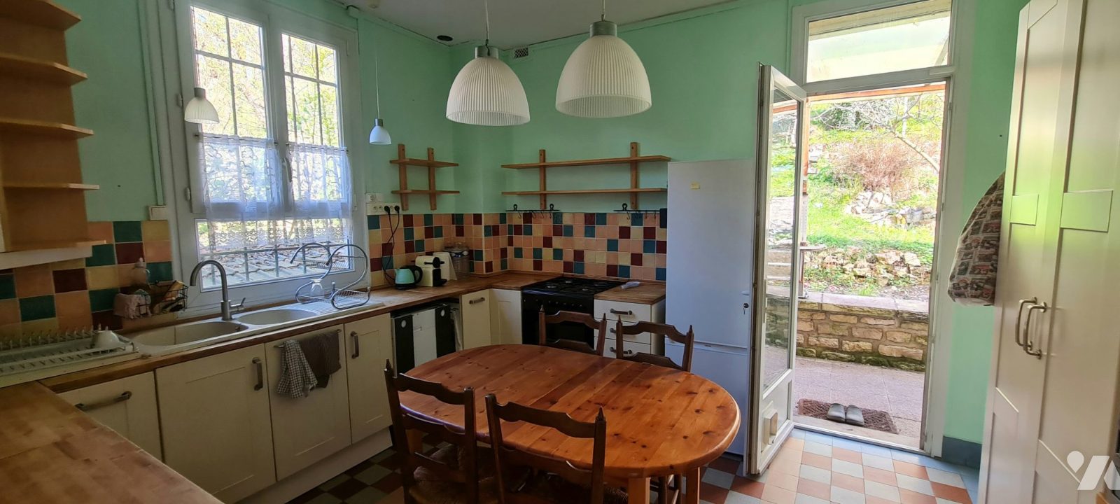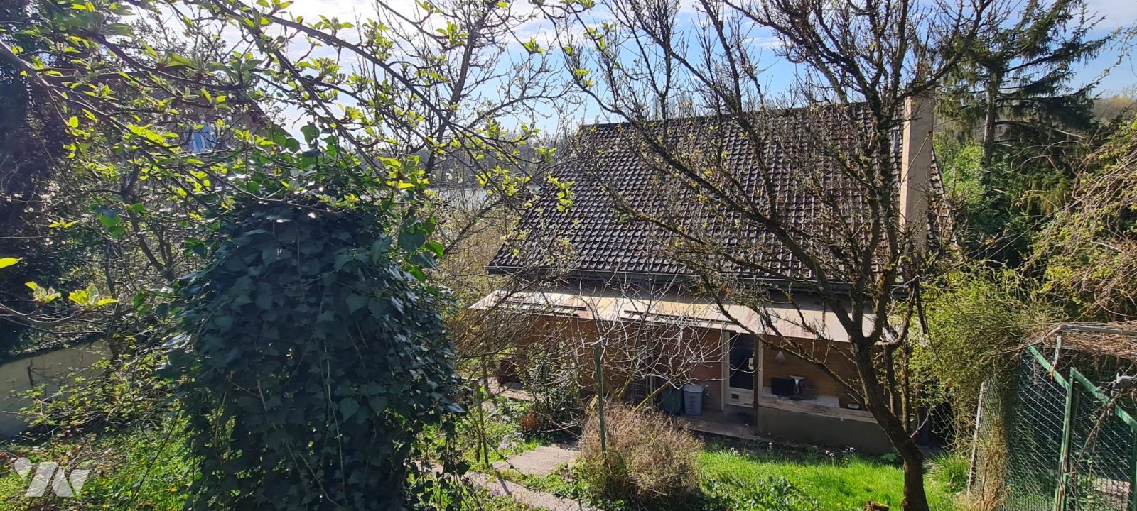 - à l'extérieur: jardin dont une partie en palier à l'arrière de la maison, ancien poulailler, bucher, une servitude de droit de passage pour accéder au bord privé donnant sur la Seine.