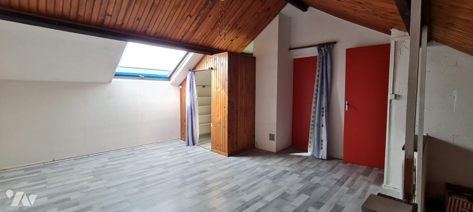 - au premier étage : une chambre d'env. 20m² avec placard sous pente et salle d'eau attenante d'env. 2m², grenier aménageable et isolé.