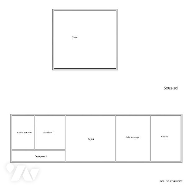 - Au rez-de-chaussée : entrée, un salon d'env. 26m² ouvert sur la salle à manger d'env. 12m², une cuisine aménagée d'env. 14m², couloir avec placard, une chambre d'env. 9m², salle d'eau avec WC suspendus.